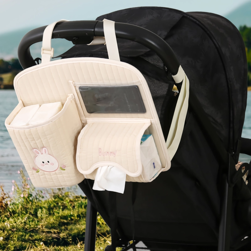 What sets our Baby Stroller Organizer apart is its blend of functionality and style. The adorable cartoon design brings a smile to both parents and children, while the practical features cater to the needs of busy parents. The thoughtful layout with multiple pockets and compartments ensures everything has its place, making your outings smoother and more enjoyable. Plus, the durable construction guarantees long-term use, making it a valuable addition to your stroller accessories.