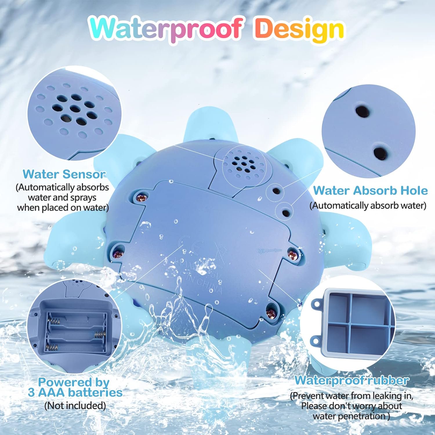 - Easy to Use: Simply place the toy in the water and watch it start spraying water, playing music, and lighting up automatically.