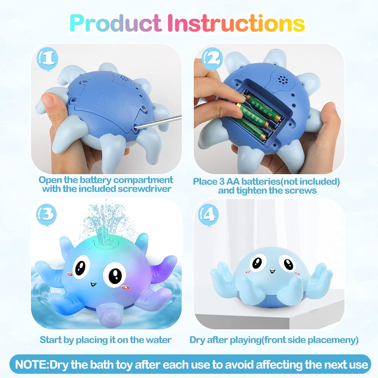 - Fun Water Sprinkler Action: The octopus creates a joyful water spraying effect, making bath time more interactive and fun for little ones.