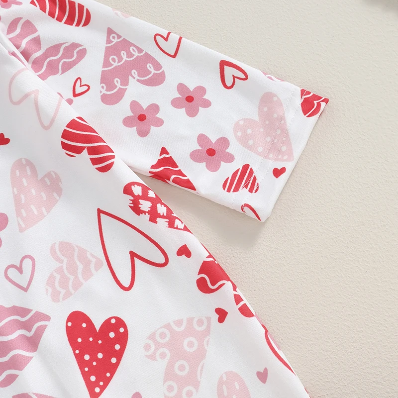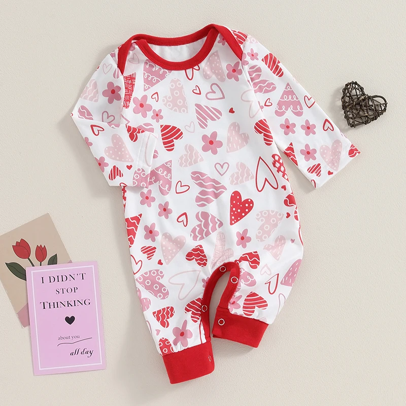 - Adorable Heart Print Design: Perfect for Valentine’s Day, this romper features a charming heart print that’s sure to spread smiles and love.