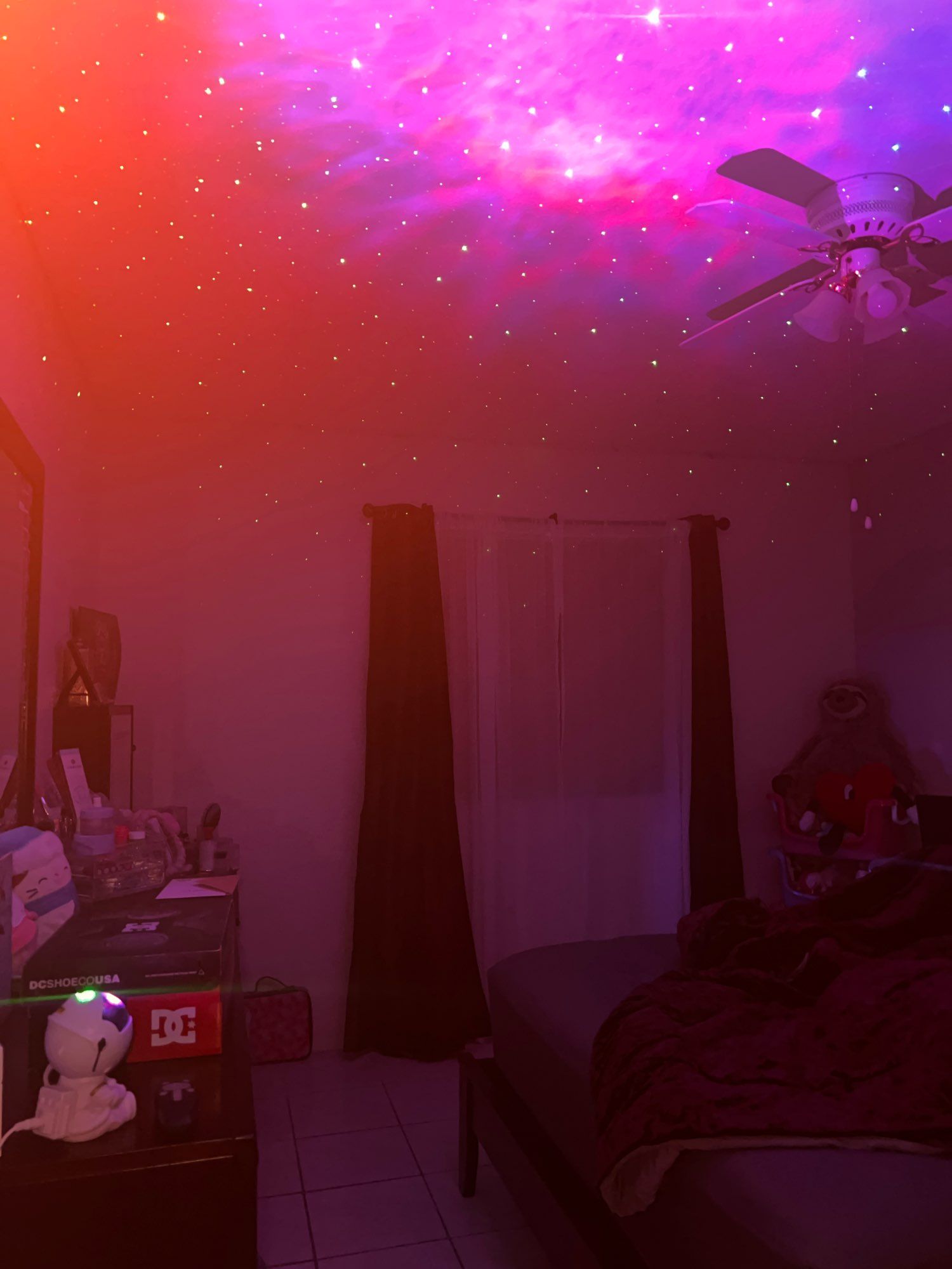I loved it. It has very nice lights, it works as a night lamp. It’s tiny doesn’t cover the entire bedroom but it’s worth it for the price. Wonderful purchase.