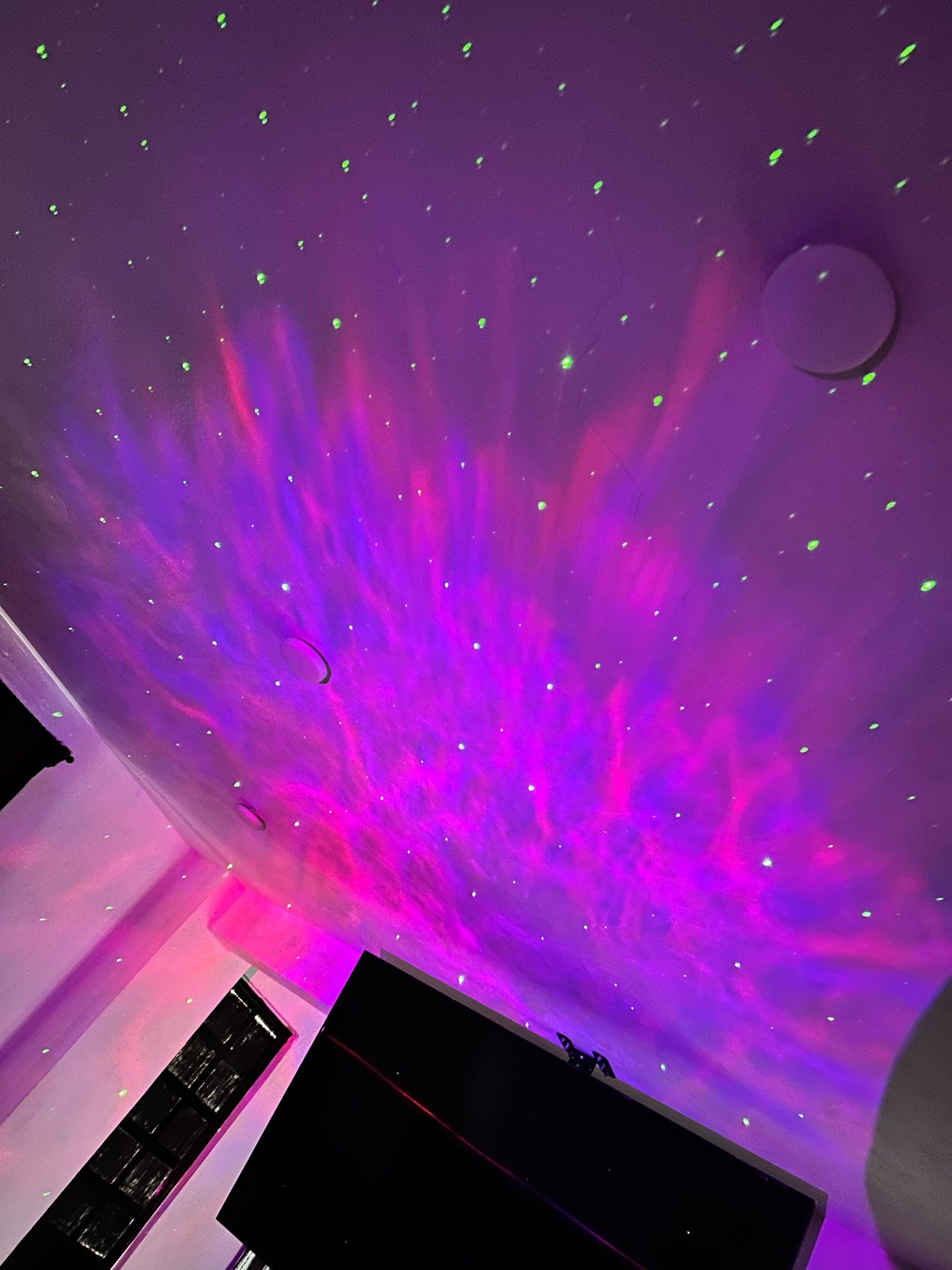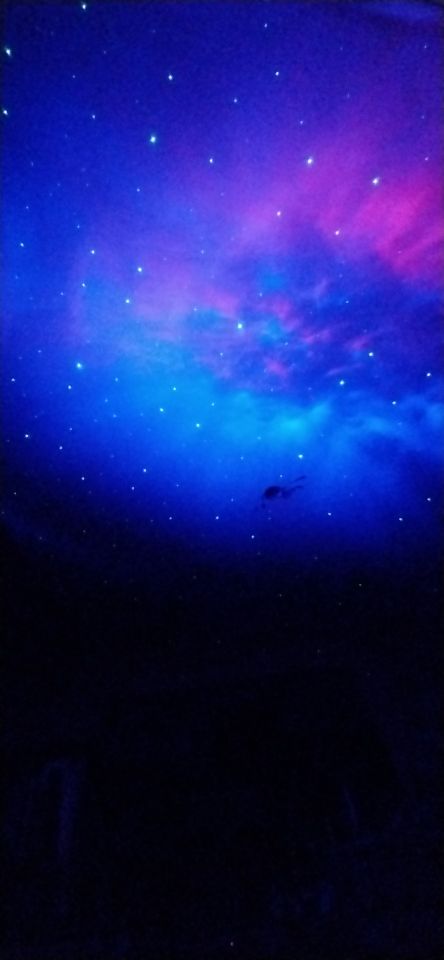 Looks super, and the nebulae move and you can change color, the stars are always green if they were white it would be perfect